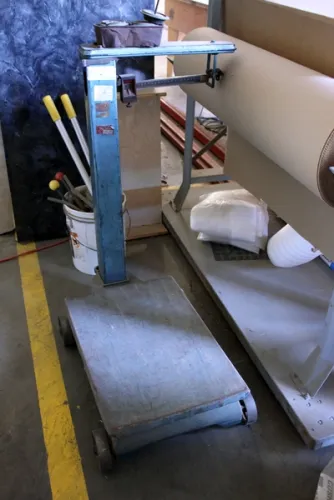 Westvaco Mdl: 250, S/N 250012492B • Robertson Photo-Mechanix, Mdl: CDHJ51, S/N 3139 • Wood Lathe • Kelco Abrasive Blast Cabinet • 30" Chicago Fan • Router W/ Table (Homemade) • Flammable Cabinets • 1,000lb Carey Scale • (2) Propane Heaters • Shop Vacs • (2) Sections Of 10' High Racking • Safe • Print Vac 190 • HP Designjet 130 Printer • Shop Tables/Benches • Bench Vises • Nail Guns • Clamps • Routers • Saw Horses • Material Storage Rack • Aluminum Inventory • Wood Inventory • Hand Grinders • Small Arbor Press • Dolly • Ladders • Shop Fans • Pallet Jack • Shelving • Cabinets • Office Furniture • Hand Tools • Brooms • Shop Cart • 30" Hampton Bay Floor Fan • Contents Of Storage/Inventory Room (Nuts/Bolts/Sand Paper/Screws/Nails/Hand Saw/Etc.)