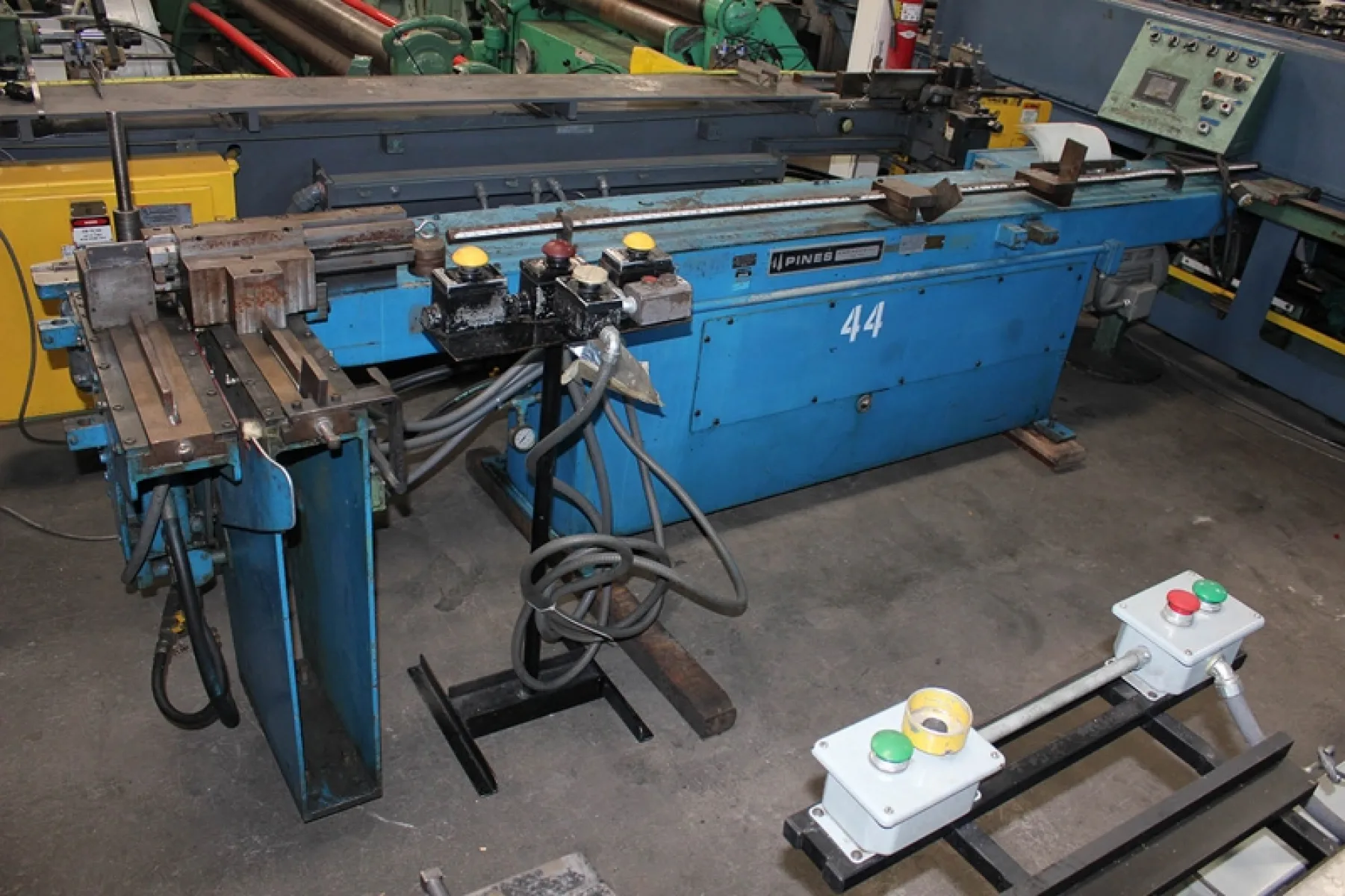 1-1/4" PINES MDL. 3T VERT. HYD. TUBE BENDER, 5-Ton Bending Force, Digital Dial-A-Bend Programmable Control, Work Support Bars, Dual Palm Control Stand, Auto Lube System, Horsepower: 20, S/N 44361-91094, (Will be Sold via Photo, Located at: Los Angeles, CA)