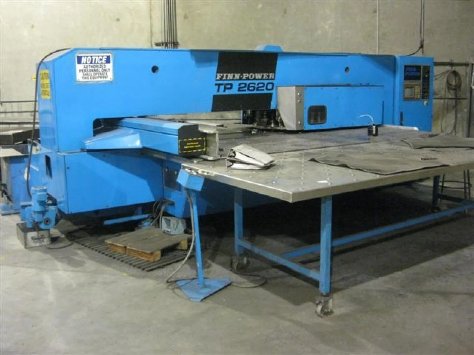 - 1992 Finn-Power type TP-2620 30 Ton CNC Turret Punch Press s/n 7.3-26200392 w/ Siemens Sinumerik 3N CNC control, 21 piece tool station, working area-1500mmx 2000mm, Max. Sheet size: 500mmx3000mm, max. material thickness-8mm, roller table, discharge, conveyor, & tooling.