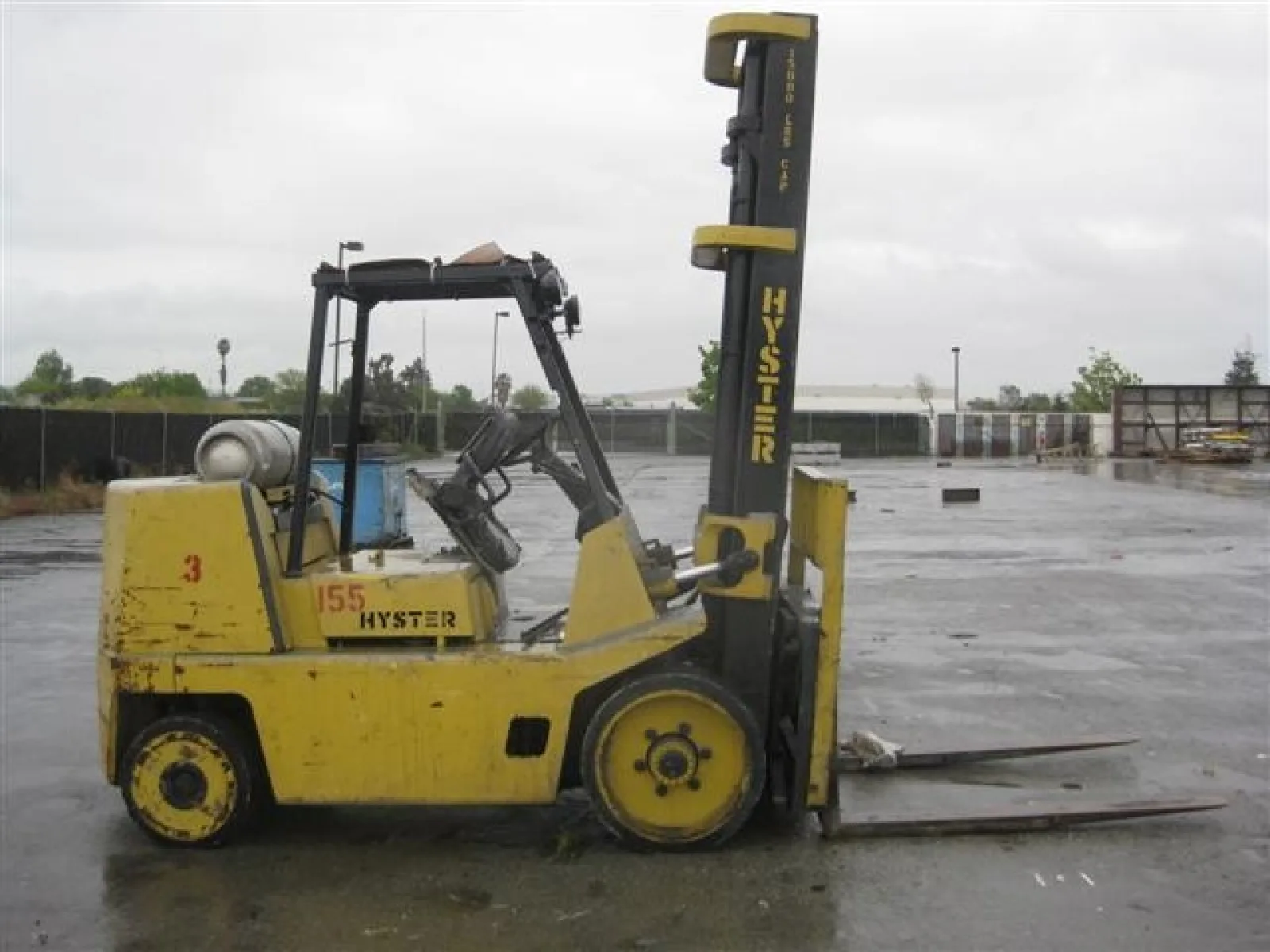 - (3) Hyster mdl. S155XL 15,800 lbs. Cap. LPG Forklifts S/N’s BC24D02845P, BC24D02034L, and N/A w/ 126” mast height, 2 stage mast, (2) with side shift, solid tires, 2-speed with Monotrol shifting, 9,311, 0,180, 2,161 metered hours.