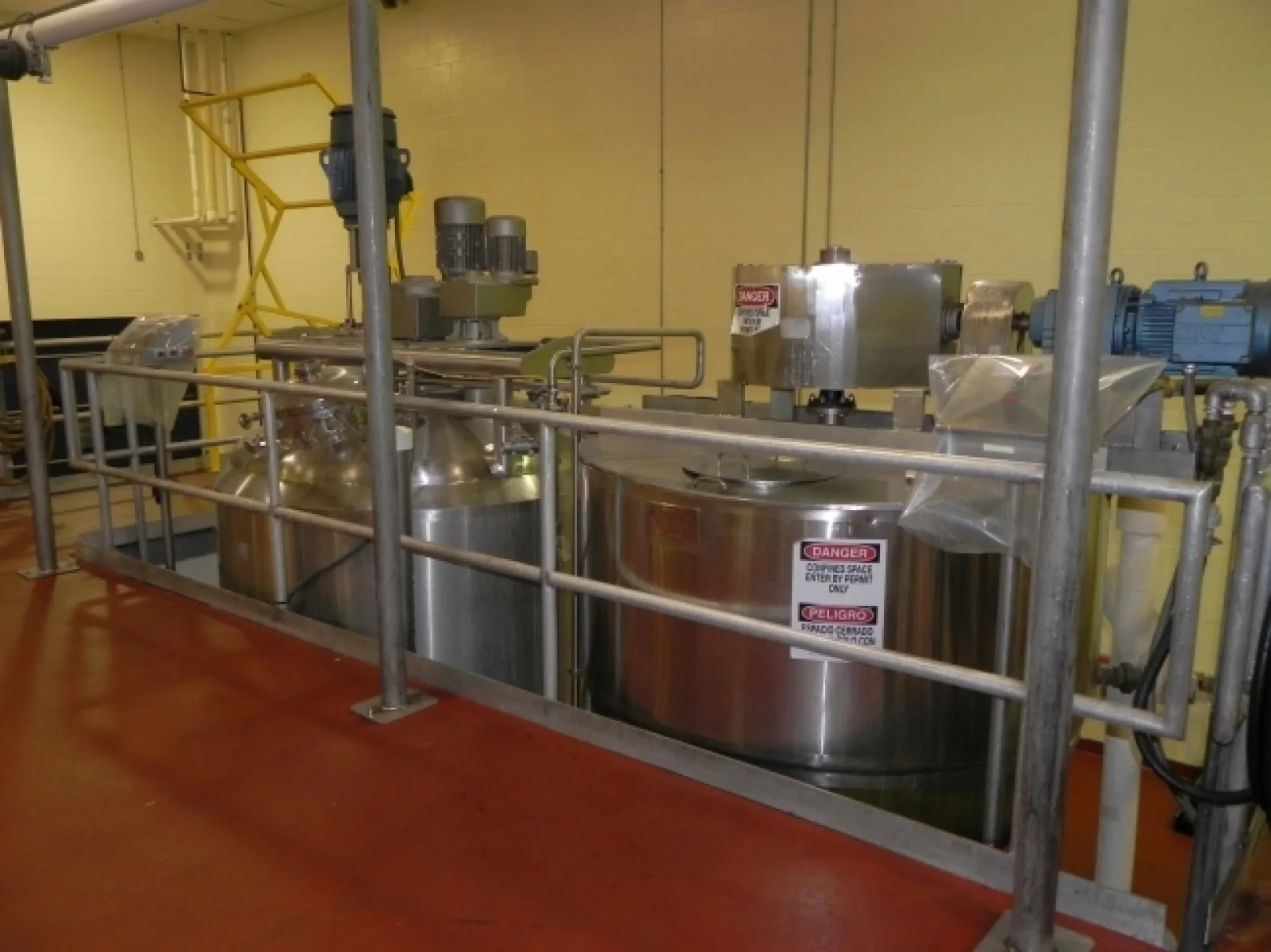 2,000 Gallon S/S Hinged Lid Jacketed Tank with (2) 3 HP Lightnin Mixers