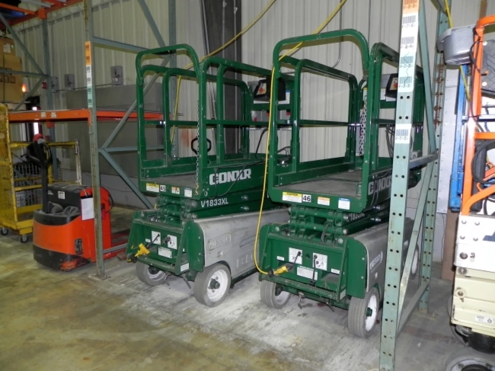 Parts Mezzanine with Decking & Stairs, Flammable Storage Cabinets, Ladders, Portable Stairs, Eye Wash Stations & Shower, Triple Bowl S/S Sinks, S/S Tables, S/S Holding Tanks, Rubbermaid Cans, Hydraulic Pallet Jacks, Dollies, 2-Door Storage Cabinets, Tankless Water Heater, Conduit, Rytec High Speed Roll Up Doors, Chrome Wire Racks, Digital Scale & Platform Scales, S/S Pails, Transfer Hoses, Shop Vacs, Portable Office, Advanced Hydro Retriever 2042, Advanced HR 2800, Foreman Desks, (2) Torit Dust Collector, Office Furniture, Steel Shelving, (131) Sections Pallet Racking, Break Room Furniture, Ceive Bailers Model: HP50, SN: 0159, (14) Additional Sections Pallet Rack, Barrel Lifts, (2) Golf Cart, (2) Condor, V1833XL, Man Lift, Hose Reels, Cherys Hydraulic Pallet Inverter, SN: 2025