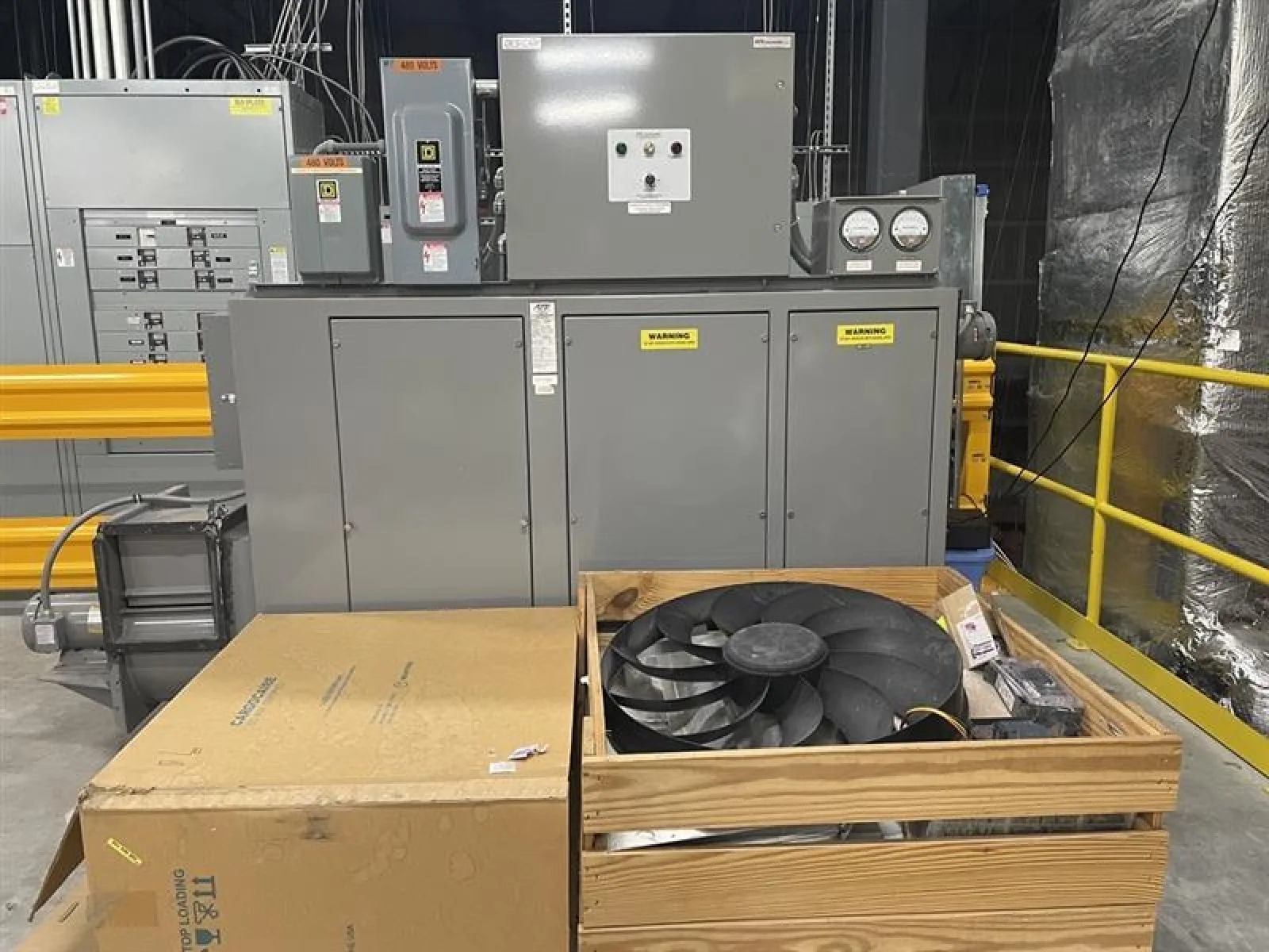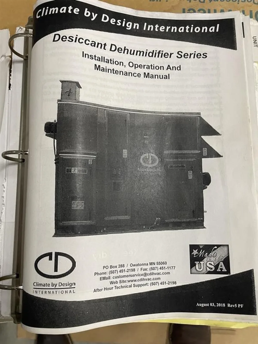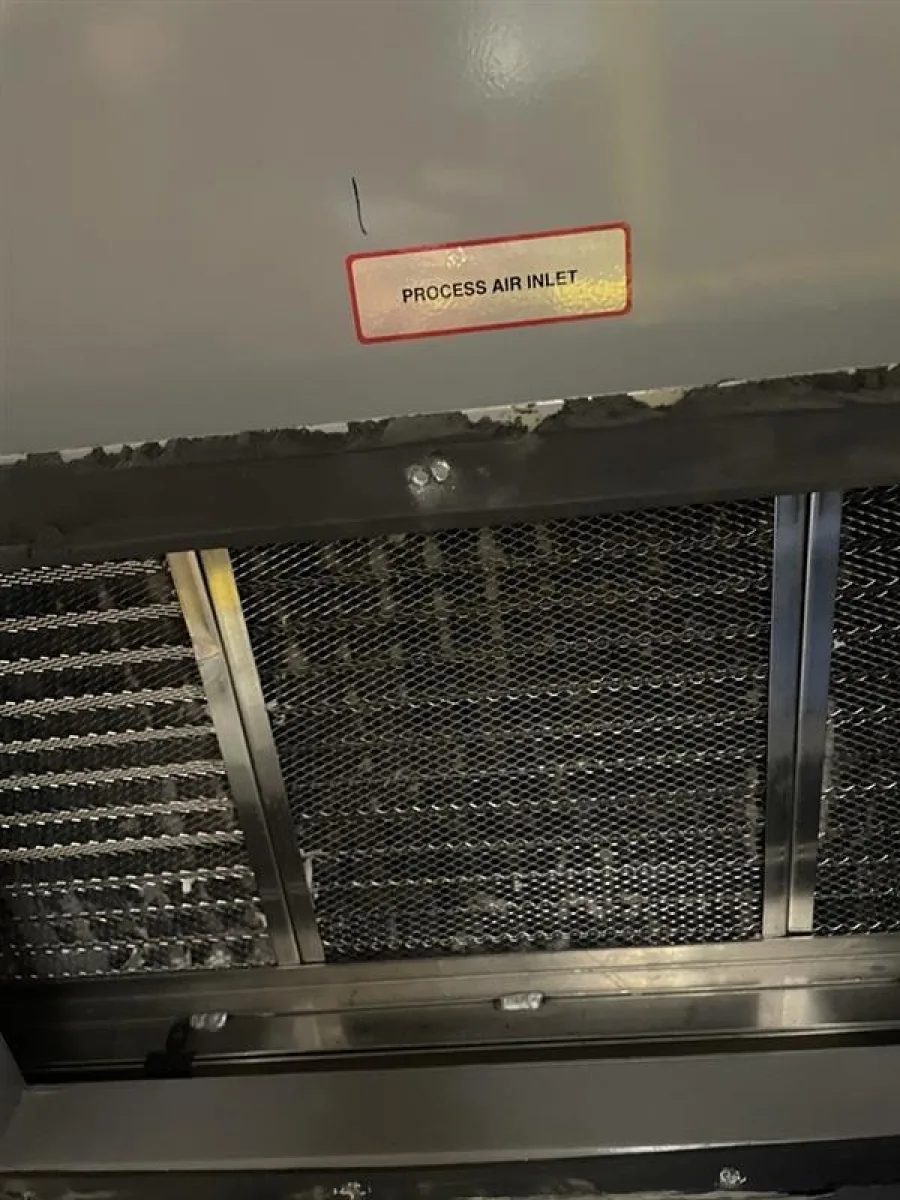 This ATS industrial dehumidification system was originally installed indoors on a mezzanine level and remained fully operational through 2019. Following removal from its original facility, the unit was relocated to a new building and placed on an indoor mezzanine, where it has been stored and not placed back into service.